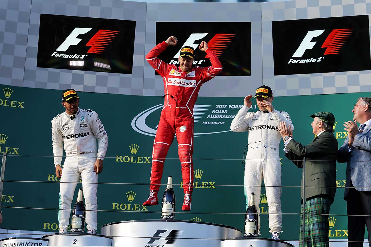 ジャンプして喜びを表すベッテル