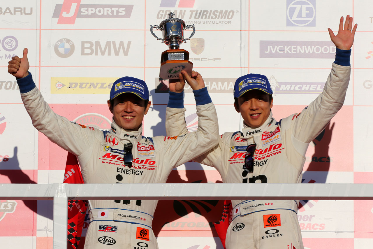 スーパーGT フォト 【写真20009】MOTUL GT-Rが逆転王座! 最終戦もてぎを完全制圧 投稿日: 2014.11.16 00:00 14スーパーGT第8戦もてぎ ウイダー モデューロ NSX CONCEPT-GTは3位表彰台。伊沢拓也は代打の役割を果たした。 © Takashi Ogasawara