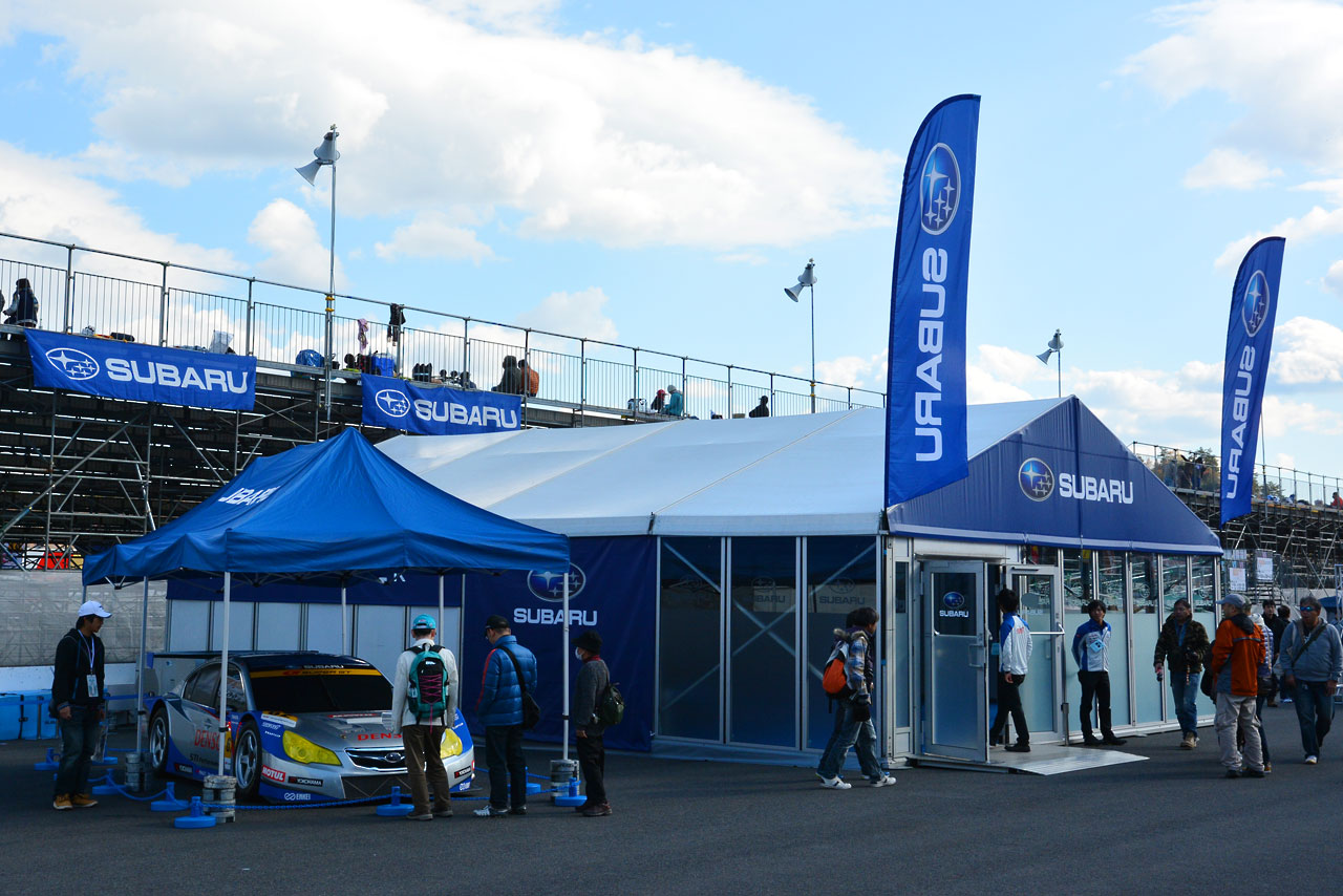 スーパーGT フォト 【写真20053】もてぎ仮設スタンド裏にメーカーのホスピ登場 投稿日: 2014.11.19 00:00 14スーパーGT第8戦もてぎ ビクトリースタンド裏のスバルブース © AUTOSPORTweb