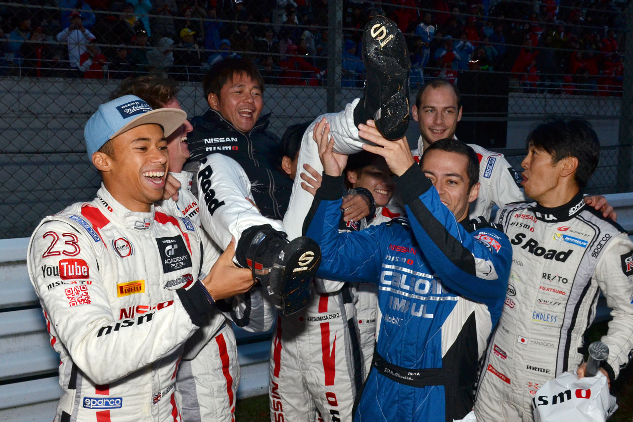 スーパーGT フォト 【写真20416】ニスモフェスは多くの観衆集めSGT王座獲得を祝う 投稿日: 2014.11.30 00:00 ニスモフェスティバル2014 フィナーレ後、「写真撮ろうよ」と声をかけたら胴上げされた本山哲。「引退するんじゃないんだけどな〜(笑)」と苦笑い。 © auto sport