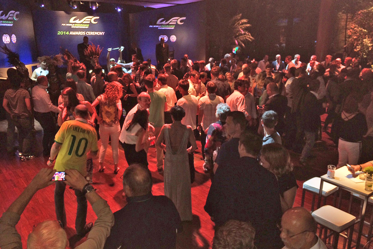 ル・マン/WEC フォト 【写真20450】WEC表彰パーティ開催。引退クリステンセンも受賞 投稿日: 2014.12.03 00:00 WEC第8戦インテルラゴス/シーズンエンドパーティー 授賞式終了後も会場は大賑わい。背番号10のシャツを着たアウディスポーツのボス、ヴォルフガング・ウルリッヒもダンスに興じていた。 © Yumiko Kaijima