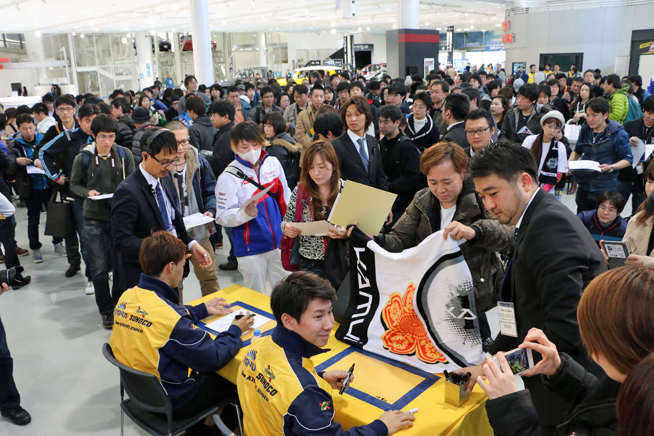 お台場MEGA WEBで開催されたKYGNUS SUNOCO Team LeMansのファンミーティング サイン会にも参加できる整理券も用意されていたが、イベント開始を前に200枚が配布終了となった。