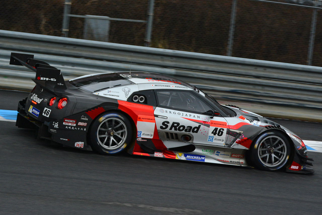 スーパーGT フォト 【写真21156】もてぎで2台のGT-Rがテスト。15仕様は空力進化(7) 投稿日: 2015.02.24 00:00 ツインリンクもてぎでミシュランタイヤのテストを行ったS Road MOLA GT-R。ゼッケンベースが2カ所ある。 © AUTOSPORTweb