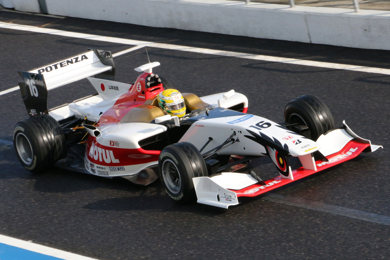 鈴鹿モータースポーツファン感謝デー2015 山本尚貴の駆るチーム無限のSF14・ホンダはカラーリングが新しいものに。