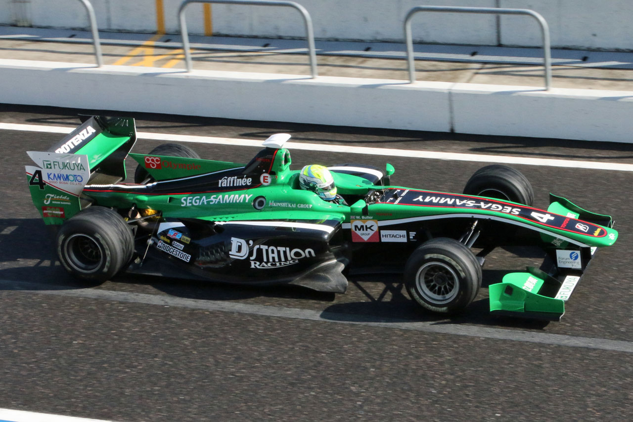 鈴鹿モータースポーツファン感謝デー2015 ウイリアム・ブラーの駆るKONDO RACINGのSF14・トヨタはサイドポンツーンにD'stationのロゴが掲げられている。