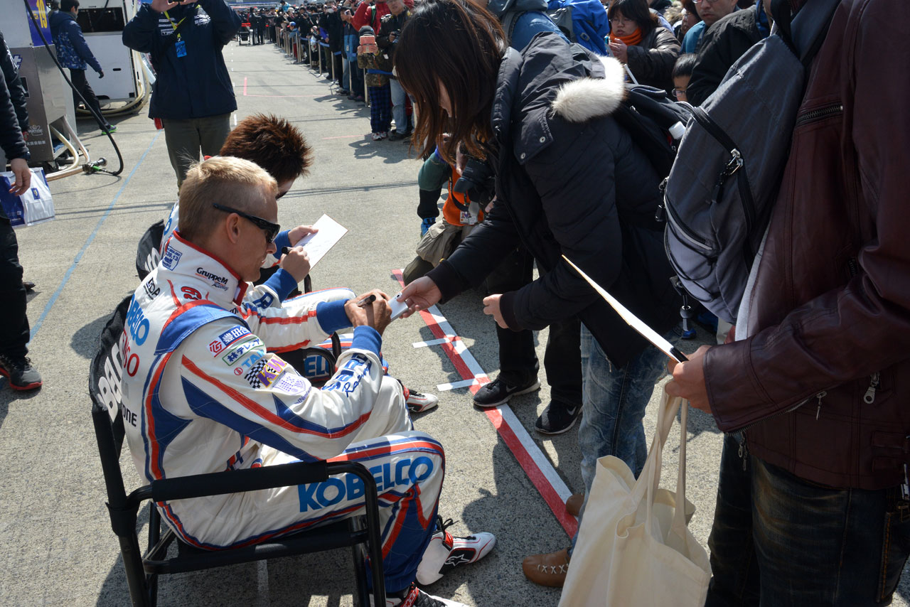 スーパーGT フォト 【写真21719】スーパーGT岡山公式テスト 日曜トピックス(4) 投稿日: 2015.03.16 00:00 15スーパーGT岡山公式テスト サインするヘイキ・コバライネンと平手晃平 © AUTOSPORTweb