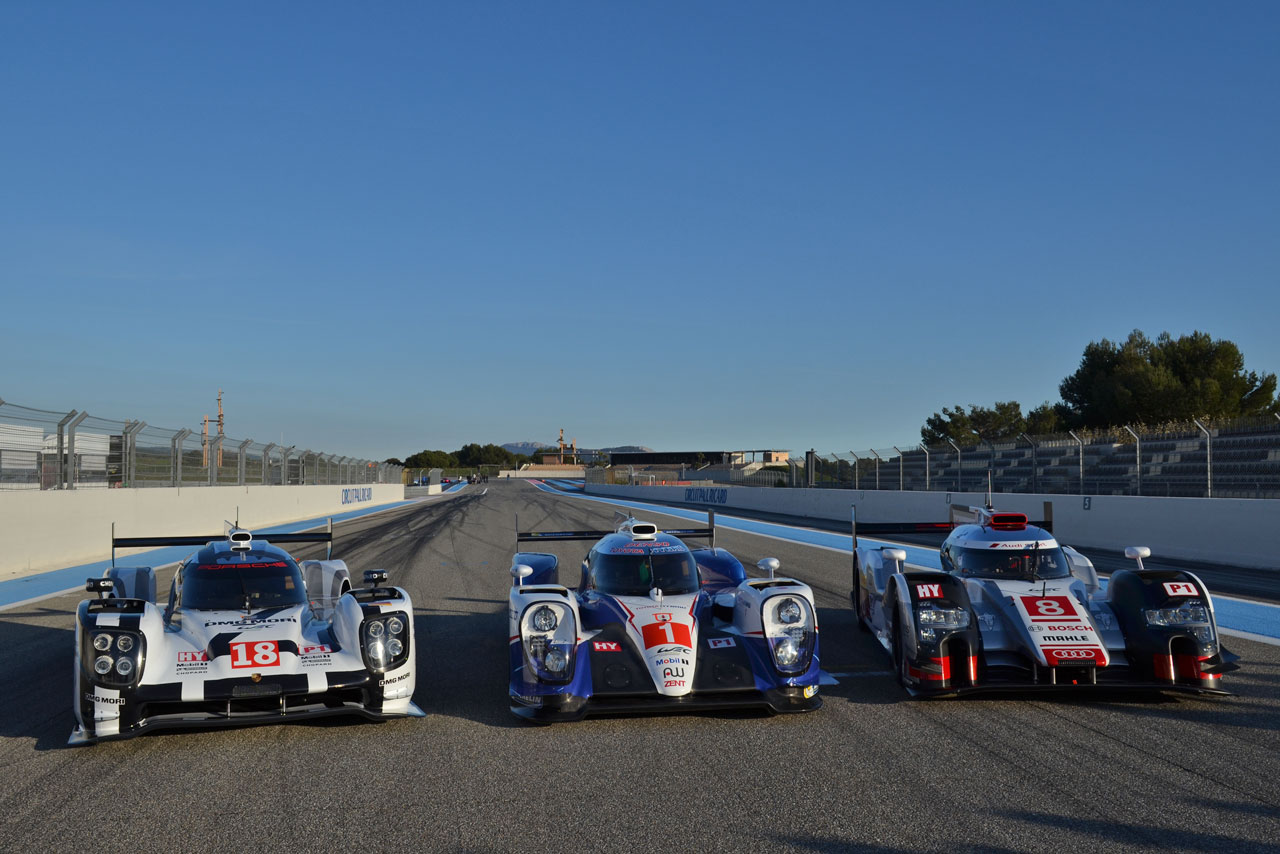 ル・マン/WEC フォト 【写真21957】WECポールリカール公式テスト 投稿日: 2015.03.29 00:00 15年WECポールリカール公式テスト 公式写真撮影の後には、LMP1の3台がホームストレートに移動 © Kazushi Nakano / auto sport