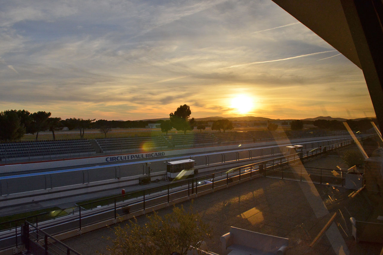 ル・マン/WEC フォト 【写真21982】WECポールリカール公式テスト 投稿日: 2015.04.01 00:00 15年WECポールリカール公式テスト 1日目の日没の様子。ポールリカールは南に下れば地中海、他3方は山という立地で、夕陽は西の山に沈む。 © Kazushi Nakano / auto sport