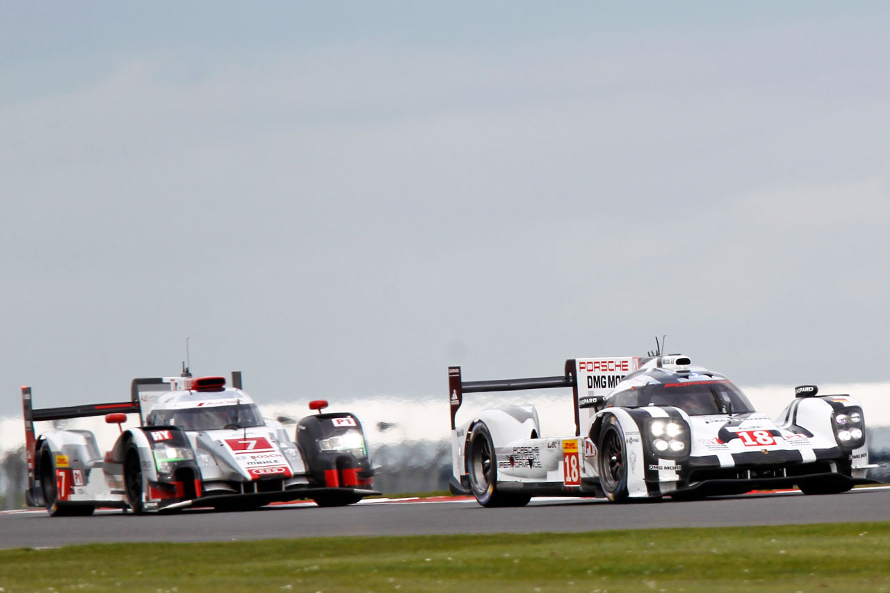 ル・マン/WEC フォト 【写真22372】WEC:アウディが開幕勝利。3陣営が表彰台分け合う 投稿日: 2015.04.13 00:00 15年WEC開幕戦シルバーストン 18号車ポルシェと7号車アウディのバトル © xpb