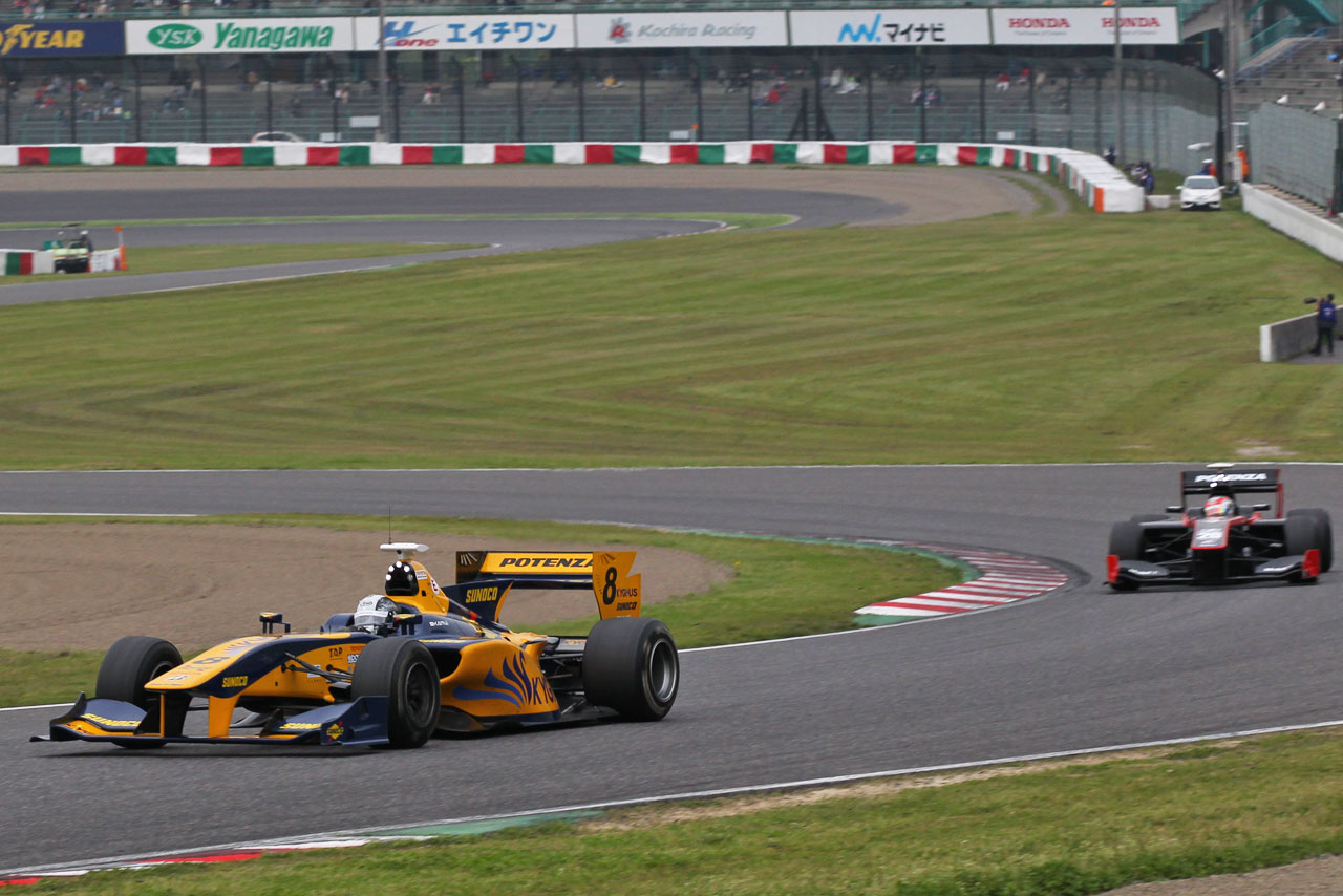 スーパーフォーミュラ フォト 【写真22489】波乱の開幕戦をロッテラーが制す! 可夢偉は9位完走 投稿日: 2015.04.19 00:00 15年スーパーフォーミュラ第1戦鈴鹿 小林可夢偉(KYGNUS SUNOCO Team LeMans)とアンドレア・カルダレッリ(LENOVO TEAM IMPUL) © Takashi Ogasawara
