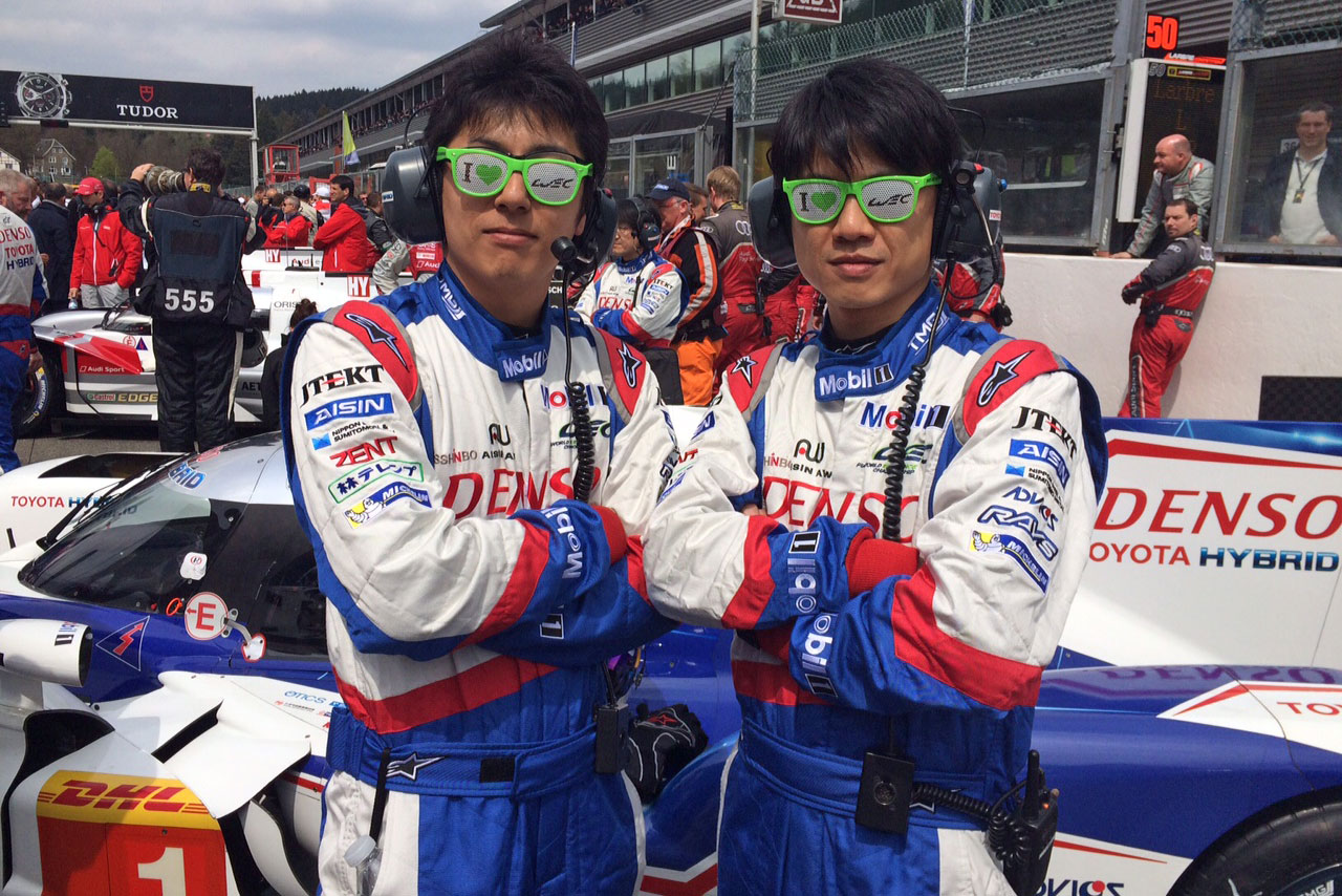 15年WEC第2戦スパ・フランコルシャン トヨタの若手(?)エンジニア、佐藤さんと市瀬さん。以前、ブラジルでコースを走っていたこともお伝えしたこのふたり。マジメ~なトヨタの雰囲気を変えるべく、目下奮闘中。「これからはトヨタの“3枚目J-SOUL Brothers”と呼んでください」とのこと。いずれ腹筋が6つに割れたら、昨年のautosport本誌で、アンドレ・ロッテラーとジェームス・ロシターがやっていたように、セミヌード写真を撮ってほしいそう。その際は、胸にマジックで、『打倒! アウディ』と書いてくれると語ってくれた。\r\n