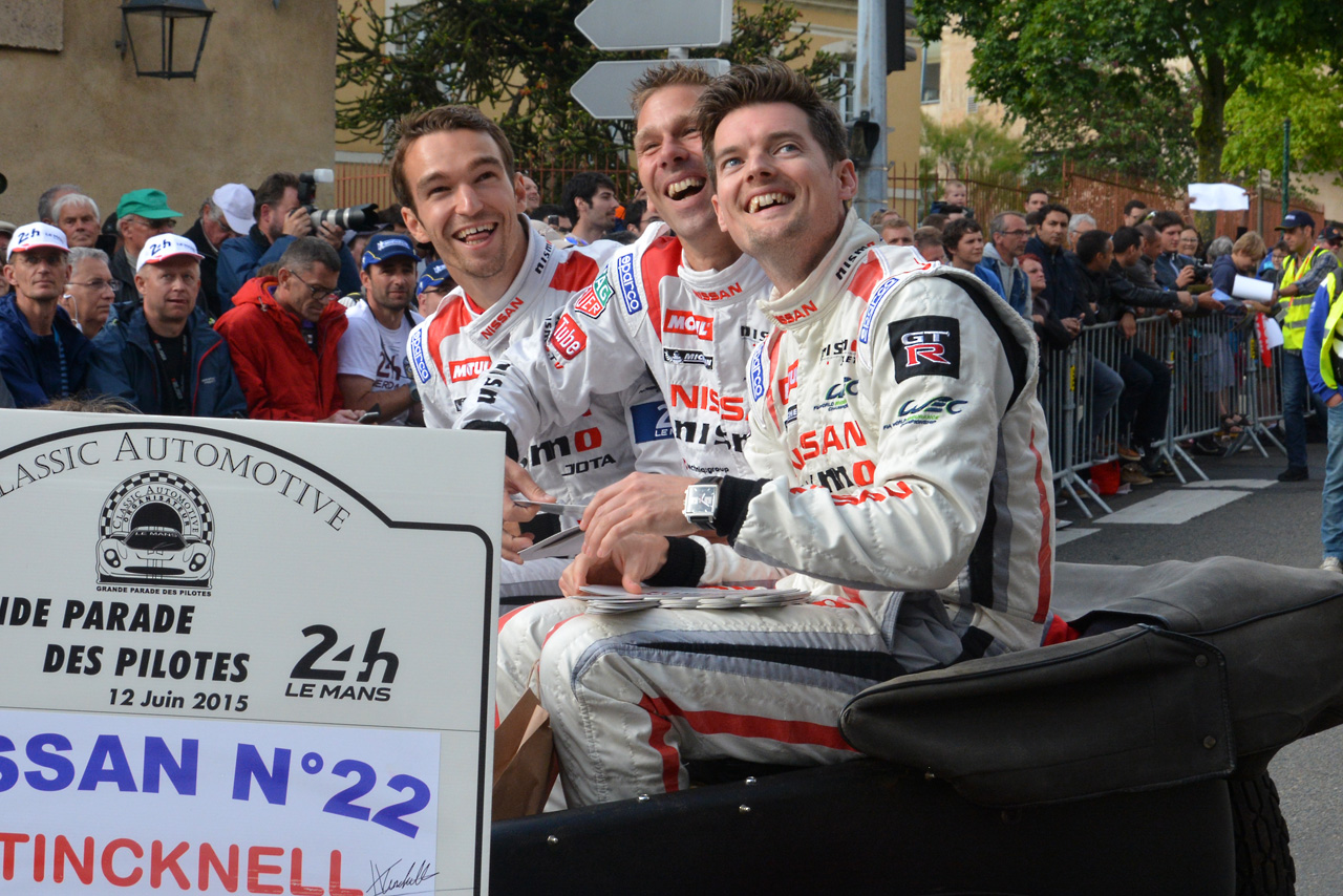 ル・マン/WEC フォト 【写真23390】ル・マン恒例のパレード開催。多くのファン集う 投稿日: 2015.06.13 00:00 15ル・マン24時間 22号車ニッサンGT-R LMニスモのドライバーたち © AUTOSPORTweb