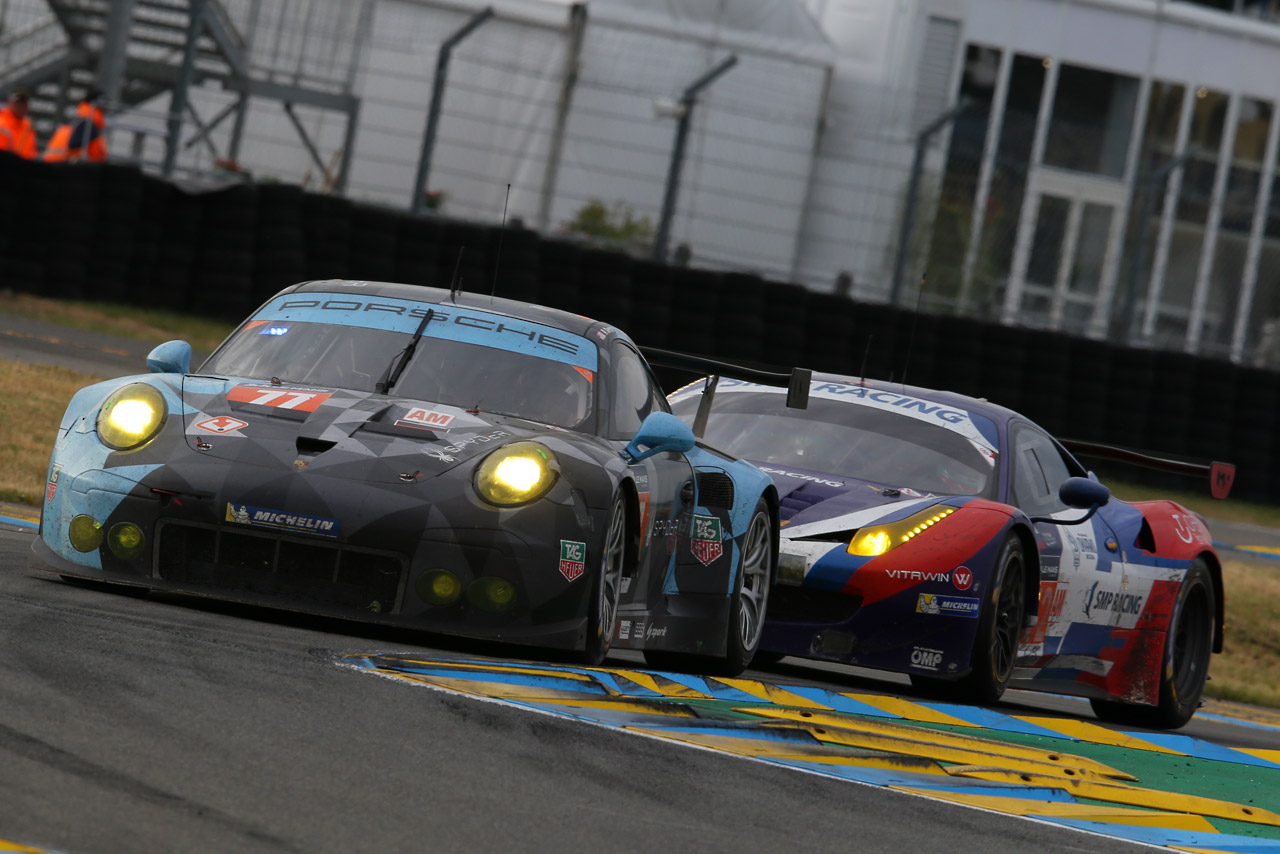 ル・マン/WEC フォト 【写真23439】ポルシェ完勝! 98年以来のル・マン制覇を果たす(4) 投稿日: 2015.06.15 00:00 15ル・マン24時間 LM-GTEアマの首位を争った2台 © Masahide Kamio