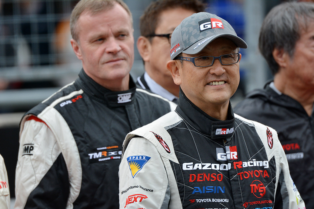 ラリー/WRC フォト 【写真25995】TOYOTA GAZOO Racing Festival 2015 投稿日: 2015.11.22 00:00 TGRF2015 オープニングセレモニーに登場した豊田章男社長とトミ・マキネン © Ryuji Hirano