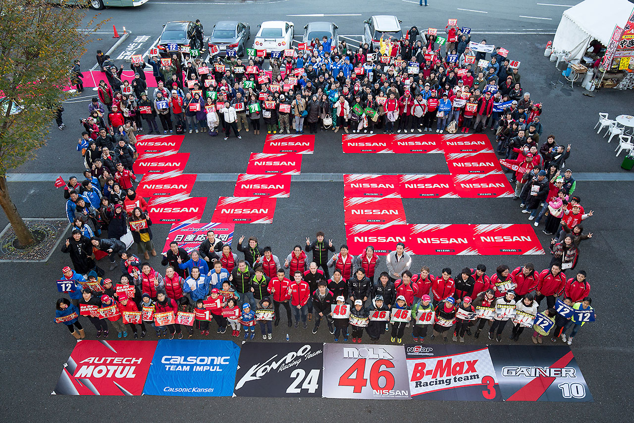 スーパーGT フォト 【写真26194】【動画】NISMO FESTIVAL 2015 ダイジェスト(5) 投稿日: 2015.12.02 00:00 NISMO FESTIVAL 2015 イベント前には、チーム関係者やドライバーが、日産応援団と写真に収まった © NISSAN / NISMO