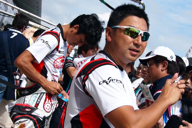 スーパーGT フォト 【写真18594】GOODSMILE RACING & TeamUKYO 投稿日: 2014.08.31 00:00 2014スーパーGT第6戦鈴鹿桃んが写真館 決勝日。ピットウォークでサイン会中のGOODSMILE RACING & TeamUKYOの谷口 信輝センシュと片岡 龍也センシュ。 © Minamomohara