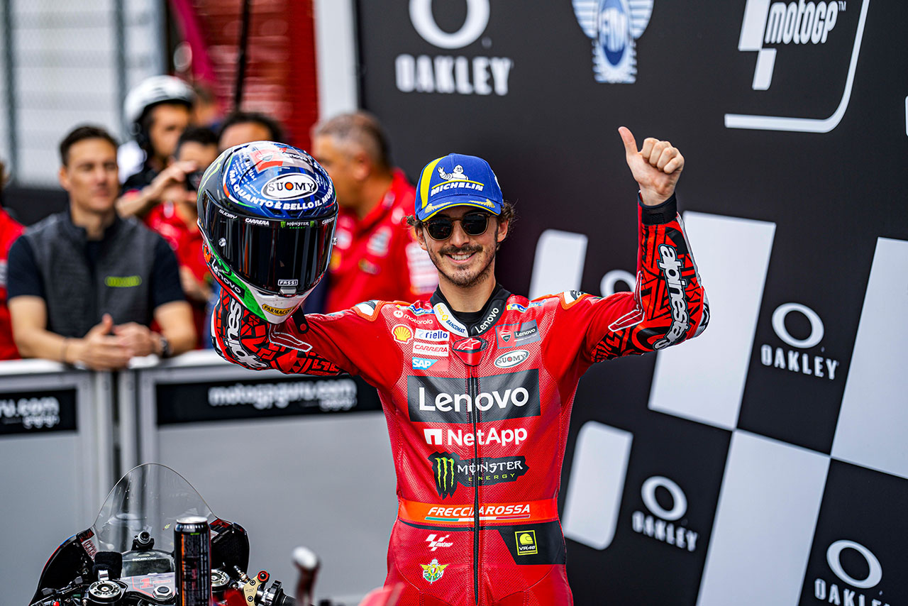 MotoGP フォト 【写真2】優勝したバニャイア、ドライとウエットが混じるコンディションは「怖かった」/第6戦イタリアGPスプリントトップ3コメント 投稿日: 2023.06.11 10:21 フランセスコ・バニャイア(ドゥカティ・レノボ・チーム) このフォトが使われている記事へ © Ducati このフォトが使われている記事へ © Ducati