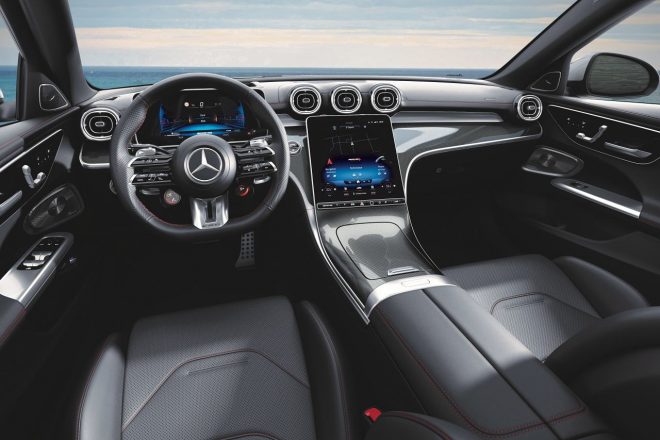 さらに『Cクラス』では初となる前後トルク配分の連続可変が可能な4MATIC+を採用し、アダプティブダンピングシステムを備えたAMG RIDE CONTROLサスペンションに、後輪操舵システムのリヤ・アクスルステアリングも標準装備。