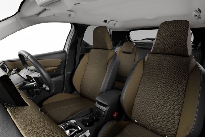 インテリアはまさにDSの世界観で満たされ、パリを代表するBASTILLE(バスチーユ)とMONTMARTRE(モンマルトル)のふたつの名称を冠したトリムが用意され、センターコンソールのクル・ド・パリ(ギヨシェ彫り)はもちろんのこと、ヘッドアップディスプレイと7インチタッチスクリーンに映し出されるグラフィックは、1920年代のフランスを思わせるアールデコ様式のレタリングが採用されている。