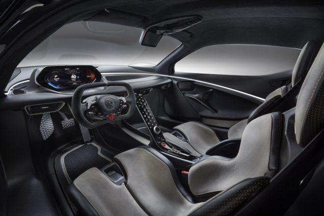 1輪あたり500PS以上の出力を並外れた応答性でコントロールし、”フィールを優先するため”に電動油圧式とされたステアリングとの協調で、完璧なトルクベクタリングによるコーナリング性能を提供する。