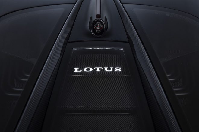 これまでのロータスの伝統にならって、ミッドシップに搭載された最大重量物のWAE製バッテリーパックは、ガラス製リアスクリーンから視認することが可能な演出も施され、車両重量配分、空力性能、居住性など相反する要素を最適化したマウント方法を採った上で、将来的には(モータースポーツなどトラック性能を重視した性能向上など)代替バッテリーを簡単にインストールできる設計とされた。
