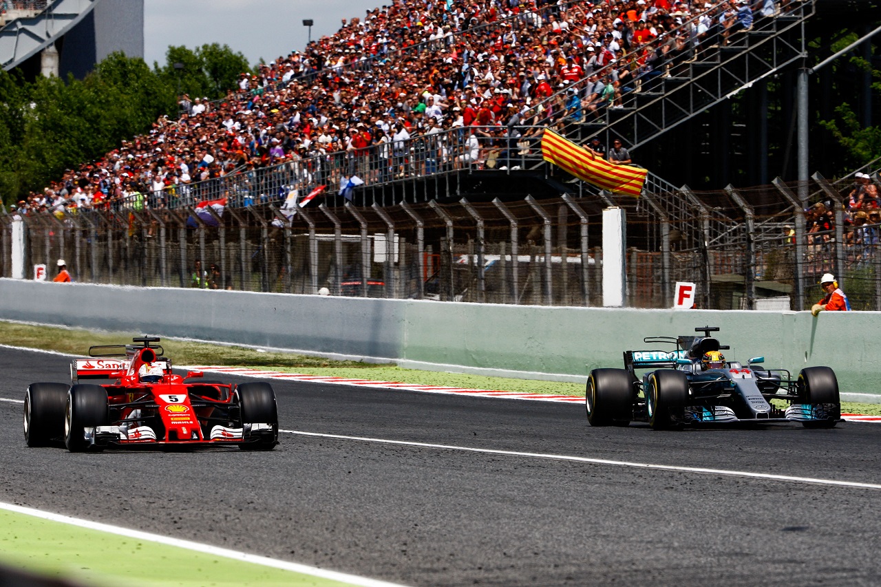 F1 フォト 【写真1】2017年F1第5戦スペインGP セバスチャン・ベッテル(フェラーリ)とルイス・ハミルトン(メルセデス)が息詰まる優勝争いを展開 投稿日: 2017.05.15 08:32 2017年F1第5戦スペインGP セバスチャン・ベッテル(フェラーリ)とルイス・ハミルトン(メルセデス)が息詰まる優勝争いを展開 このフォトが使われている記事へ © XPB Images このフォトが使われている記事へ © LAT