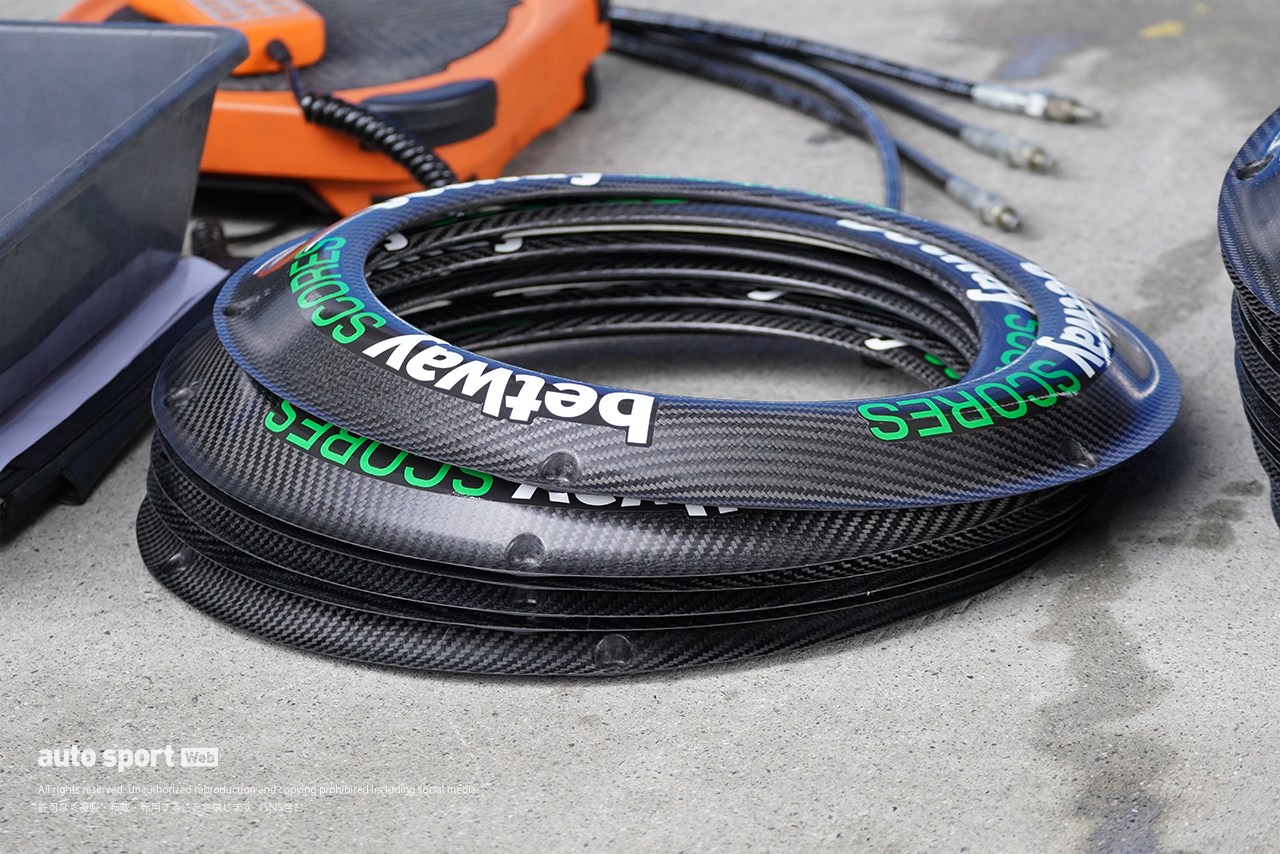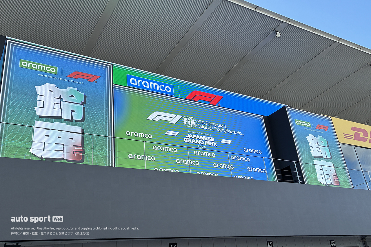 【写真6】2026年F1第3戦日本GP木曜日 ハースのピット裏。ボード類もゴジラ仕様に
