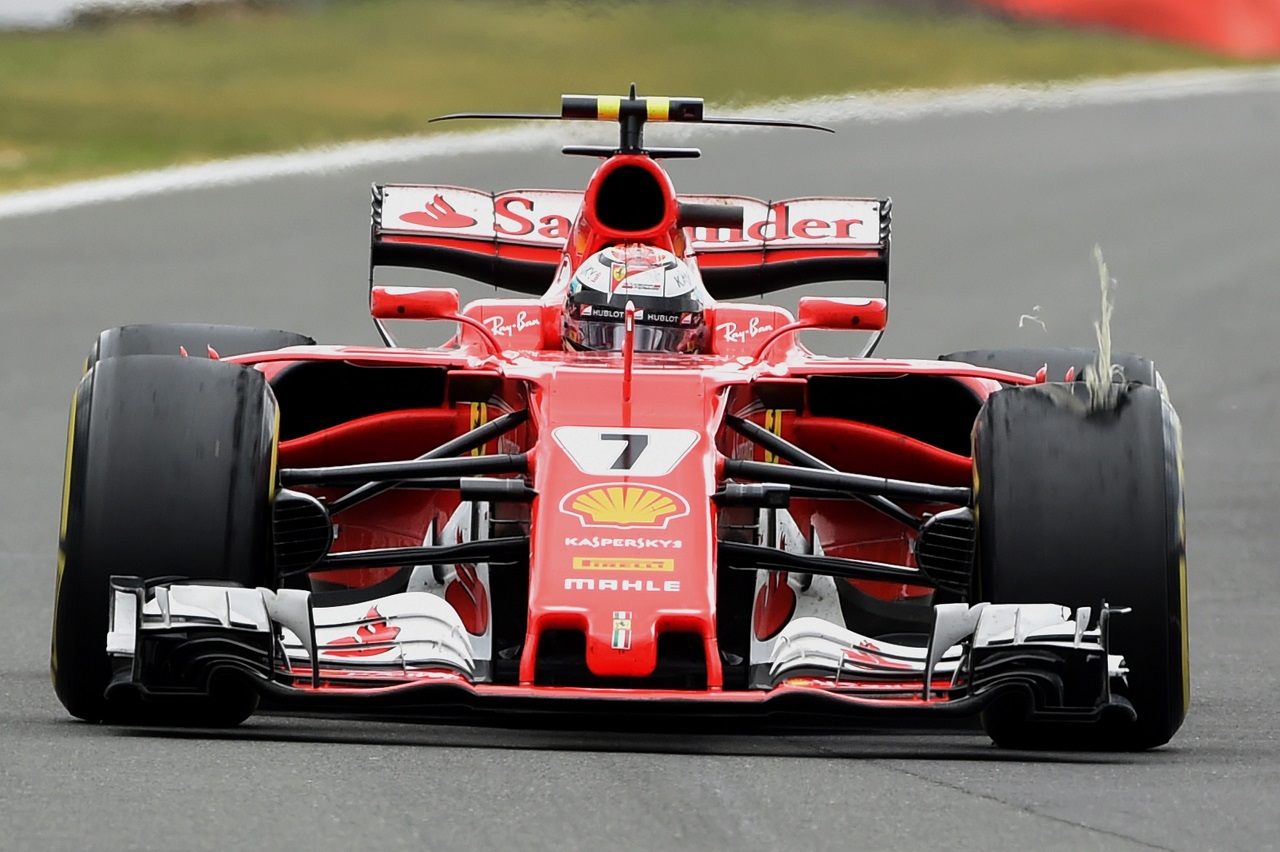 2017年F1第10戦イギリスGP 決勝終盤、キミ・ライコネン(フェラーリ)のタイヤにトラブル発生