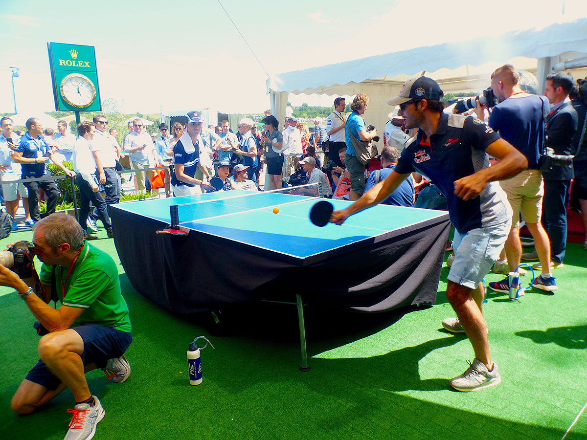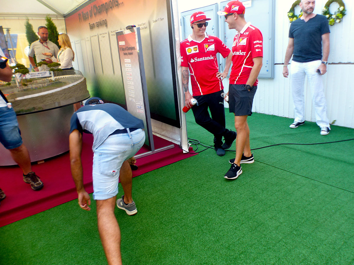 2017年F1第11戦ハンガリーGP フェルナンド・アロンソと雑談するマックス・フェルスタッペン