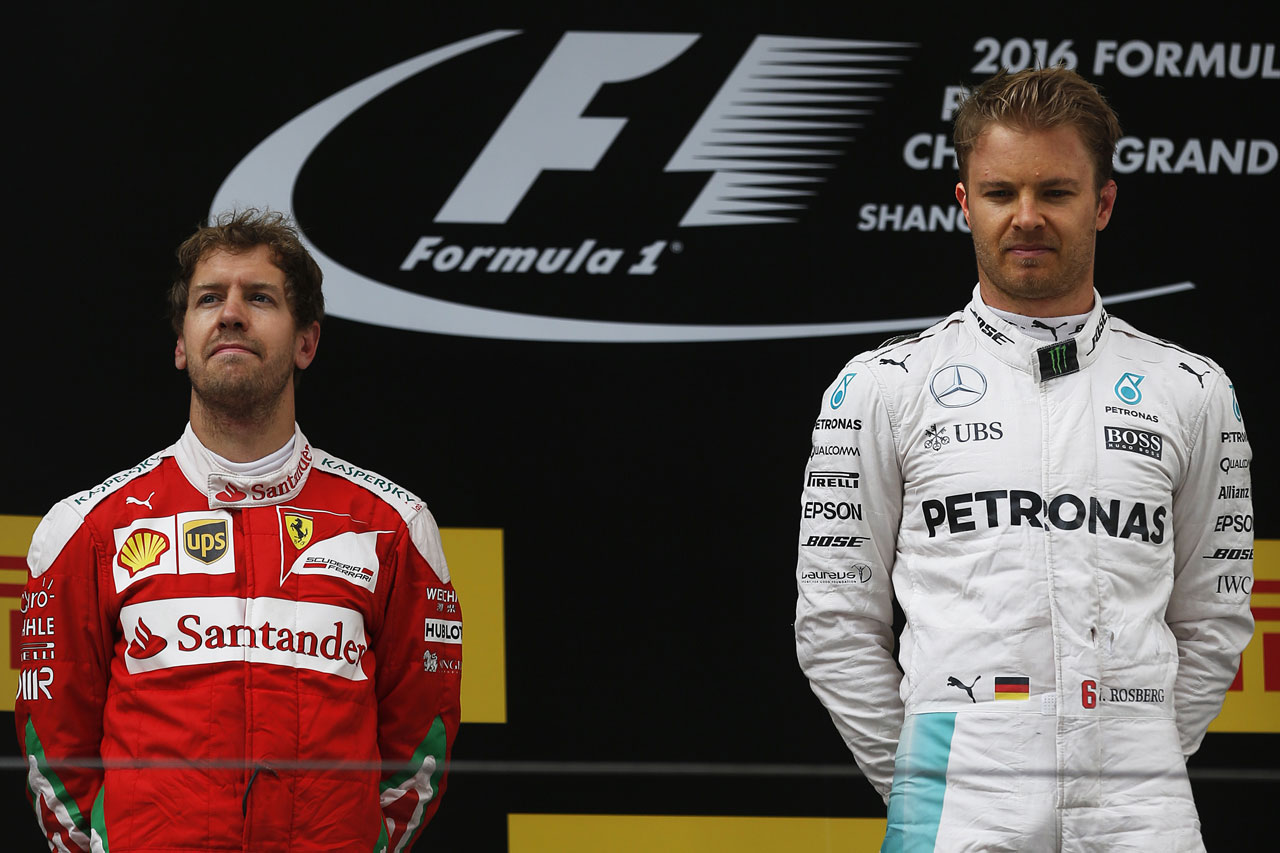 F1 フォト 【写真1】2016年中国GP ニコ・ロズベルグとセバスチャン・ベッテル 投稿日: 2016.05.19 16:20 2016年中国GP ニコ・ロズベルグとセバスチャン・ベッテル このフォトが使われている記事へ © LAT