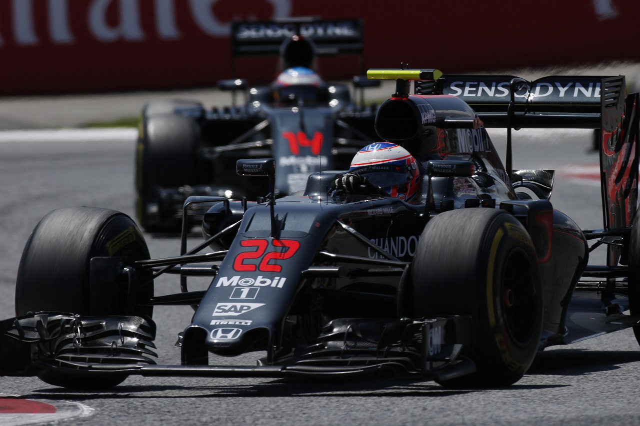 F1 フォト 【写真1】2016年スペインGP ジェンソン・バトンとフェルナンド・アロンソ(マクラーレン・ホンダ) 投稿日: 2016.05.23 08:29 2016年スペインGP ジェンソン・バトンとフェルナンド・アロンソ(マクラーレン・ホンダ) このフォトが使われている記事へ © LAT