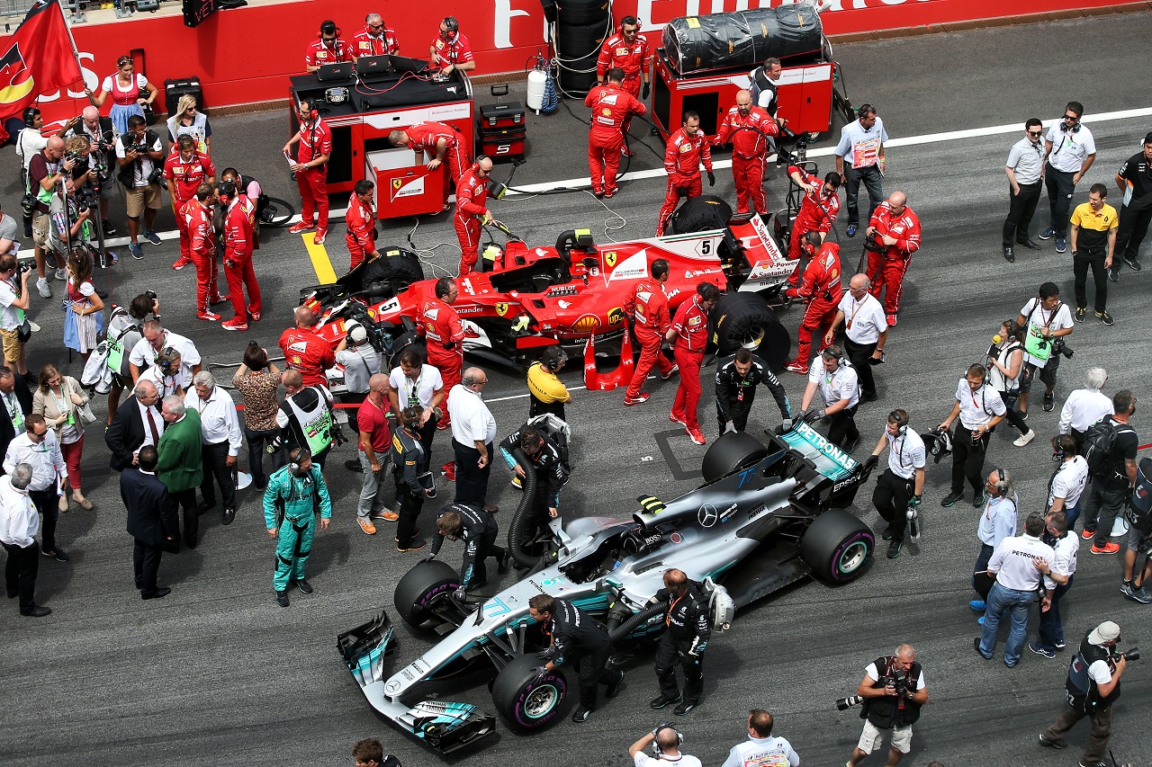 グリッドに並ぶフェラーリとメルセデス