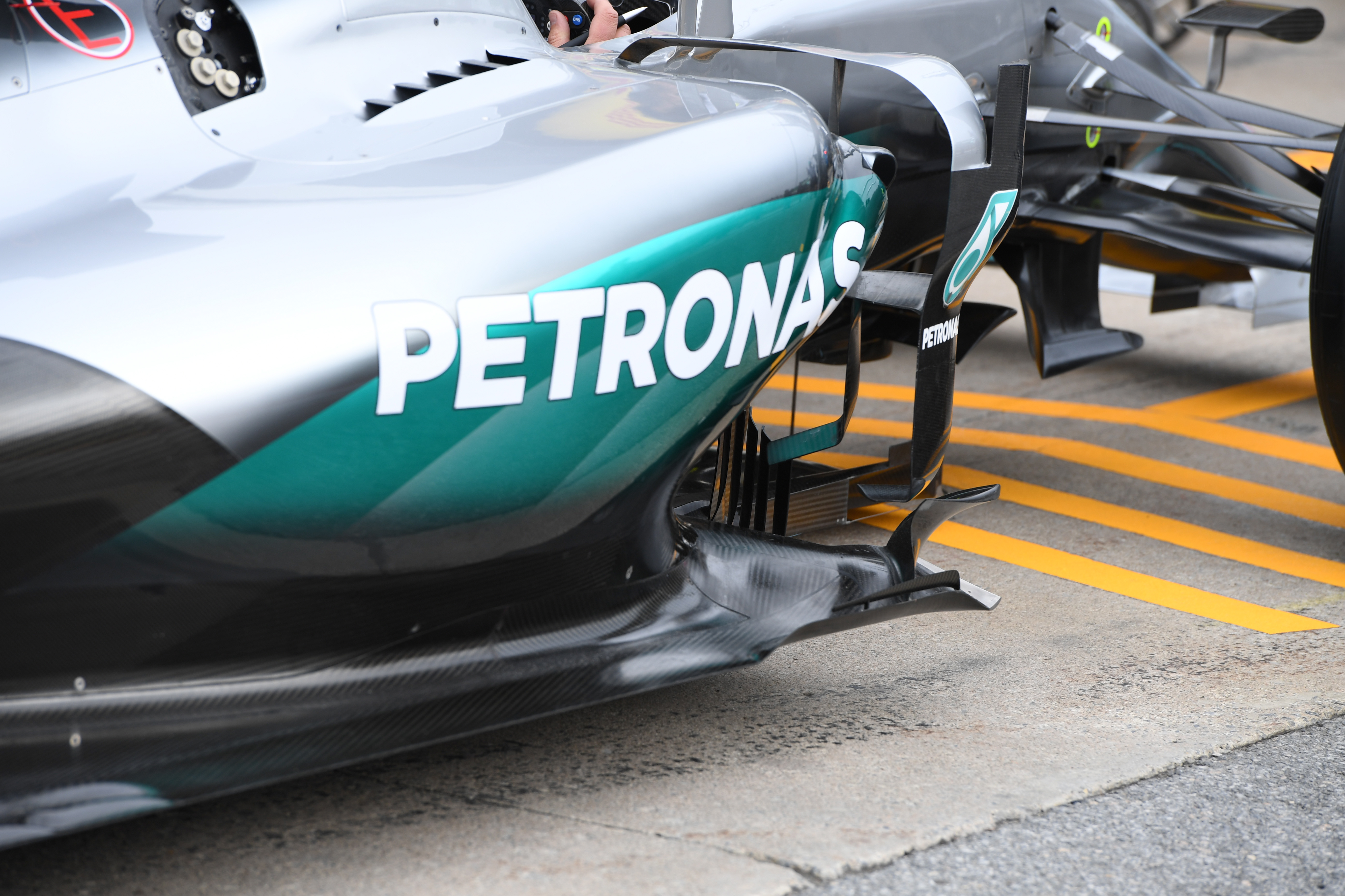 サイドポンツーン周辺の空力処理も複雑さを増している。定番となって久しいアンダーカット(下部の絞り込み)は、アンダーカットがない形状に比べて、このエリアでのダウンフォース発生量が増すため、欠かせない造形だ。