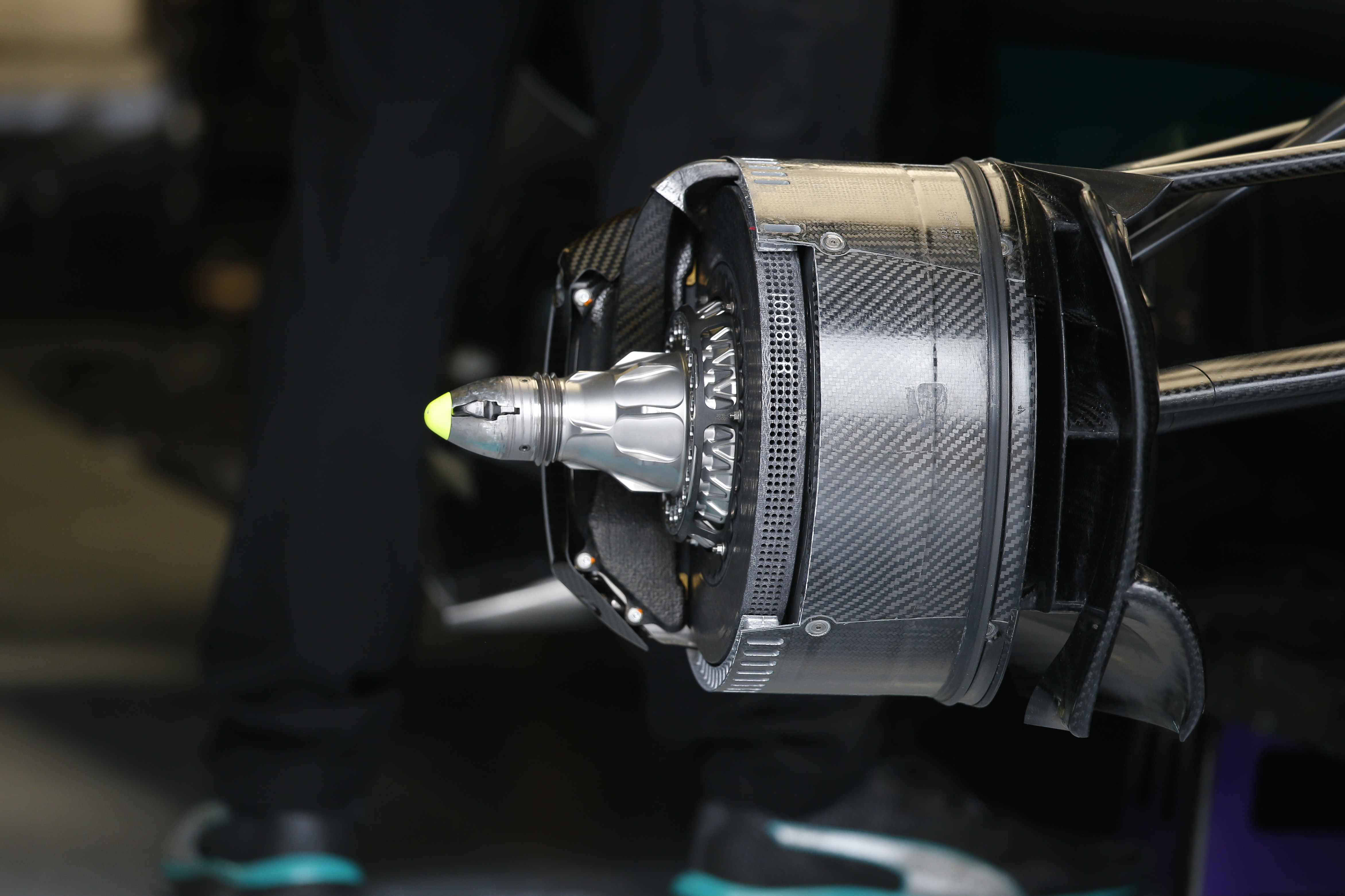 最後にフロントブレーキドラムを見て締めくくりとしよう。ブレーキユニットの冷却とホイールを通じて外側に排出される空気の制御を受け持つダクトが整然と配されており、隙がない。こうした緻密な空力処理は従来レッドブルが得意とするところだったが、お株を奪うような見事な作り込みだ。これだけ手の込んだ、しかも精度の高い作り込みを見せつけられてしまうと、他を圧倒する速さにも納得せざるを得ないというものだ。