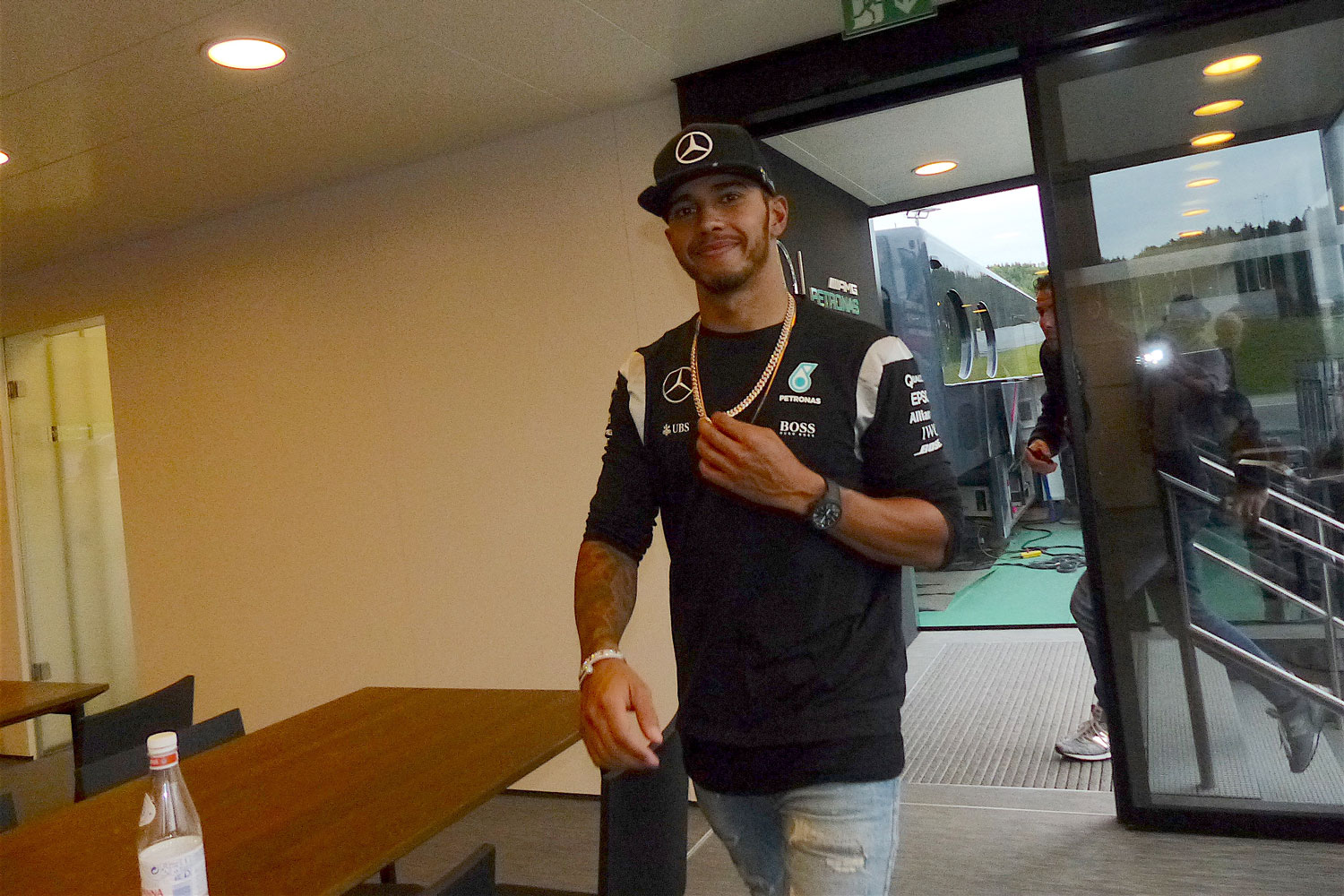 オーストリアGPのレース後には、こんなことがあった。毎戦メルセデスはレース後にドライバーの共同記者会見を行っており、レッドブルリンクでは2台が接触したこともあって大勢のメディアがメルセデスのモーターホームに集結していた。