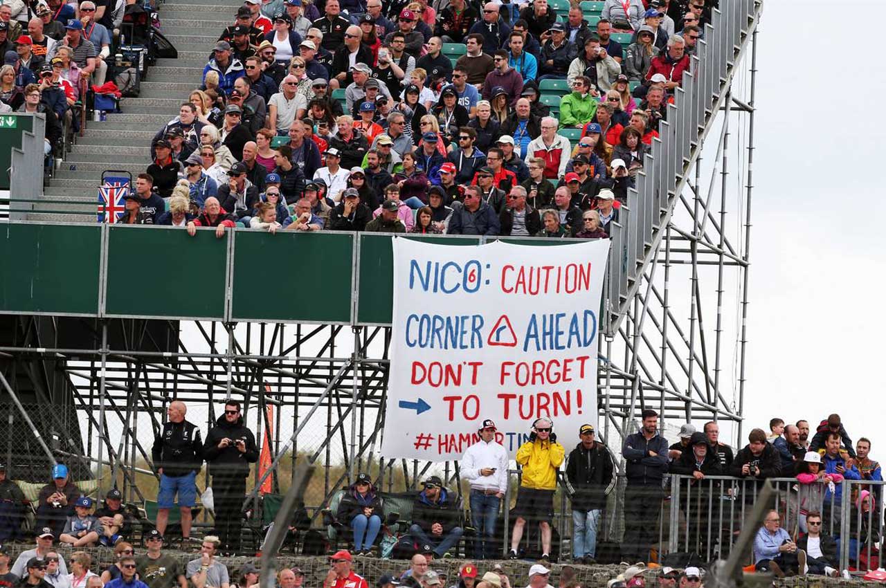 F1 フォト 【写真1】イギリスGP表彰台でのブーイングにロズベルグ、ハミルトンが見解を示す 投稿日: 2016.07.12 14:55 「注意、この先にコーナーあり。曲がるのを忘れないでね!」イギリスのファンは横断幕を使いロズベルグへジョークを飛ばした このフォトが使われている記事へ © XPB Images