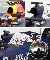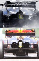 まだこの段階では、去年までのような強いレーキ(マシンリヤの車高が上がった姿勢)を継承しているのか、あるいはホイールベースが伸びているのか(昨年のレッドブルは全マシン中最短だった)、不明である。テスト中の写真では、明らかにかなりの傾斜がついているが。