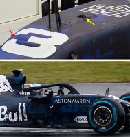 エンジンカウルは昨年型は1枚のパーツが全体を覆っていたのに対し、RB14では何枚かに分割されている。2010年のRB6のように、今後何らかの開口部が加えられることも考えられる。