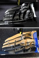フロントウイングにも、大きな変更が加えられた。小さな羽根で構成されるアーチがいっそう存在を主張しており、前輪が起こす乱流を打ち消す役割を十分にはたしてくれそうに見える。