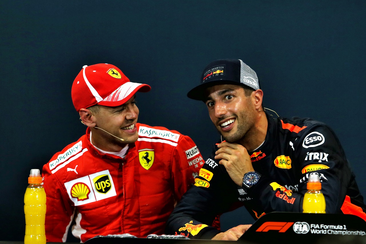 F1 フォト 【写真1】2018年F1第6戦モナコGP 予選2番手のセバスチャン・ベッテル(フェラーリ)とポールポジションのダニエル・リカルド(レッドブル) 投稿日: 2018.05.27 12:48 2018年F1第6戦モナコGP 予選2番手のセバスチャン・ベッテル(フェラーリ)とポールポジションのダニエル・リカルド(レッドブル) このフォトが使われている記事へ © XPB Images