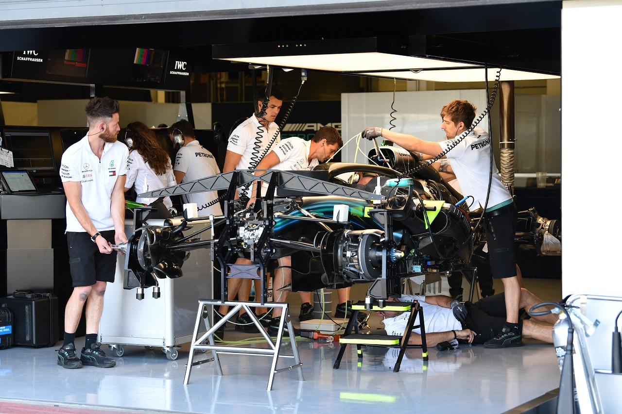 F1 フォト 【写真1】2018年F1第10戦イギリスGP木曜 メルセデスのガレージ 投稿日: 2018.07.06 10:35 2018年F1第10戦イギリスGP木曜 メルセデスのガレージ このフォトが使われている記事へ © Sutton Images このフォトが使われている記事へ © Sutton Images