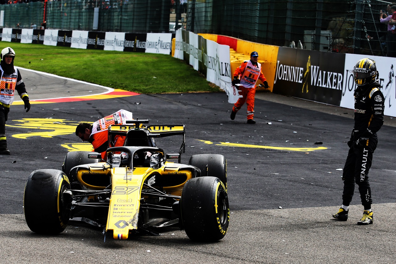 F1 フォト 【写真1】2018年F1第13戦ベルギーGP クラッシュの後、マシンから降りたニコ・ヒュルケンベルグ(ルノー) 投稿日: 2018.08.27 04:54 2018年F1第13戦ベルギーGP クラッシュの後、マシンから降りたニコ・ヒュルケンベルグ(ルノー) このフォトが使われている記事へ © XPB Images