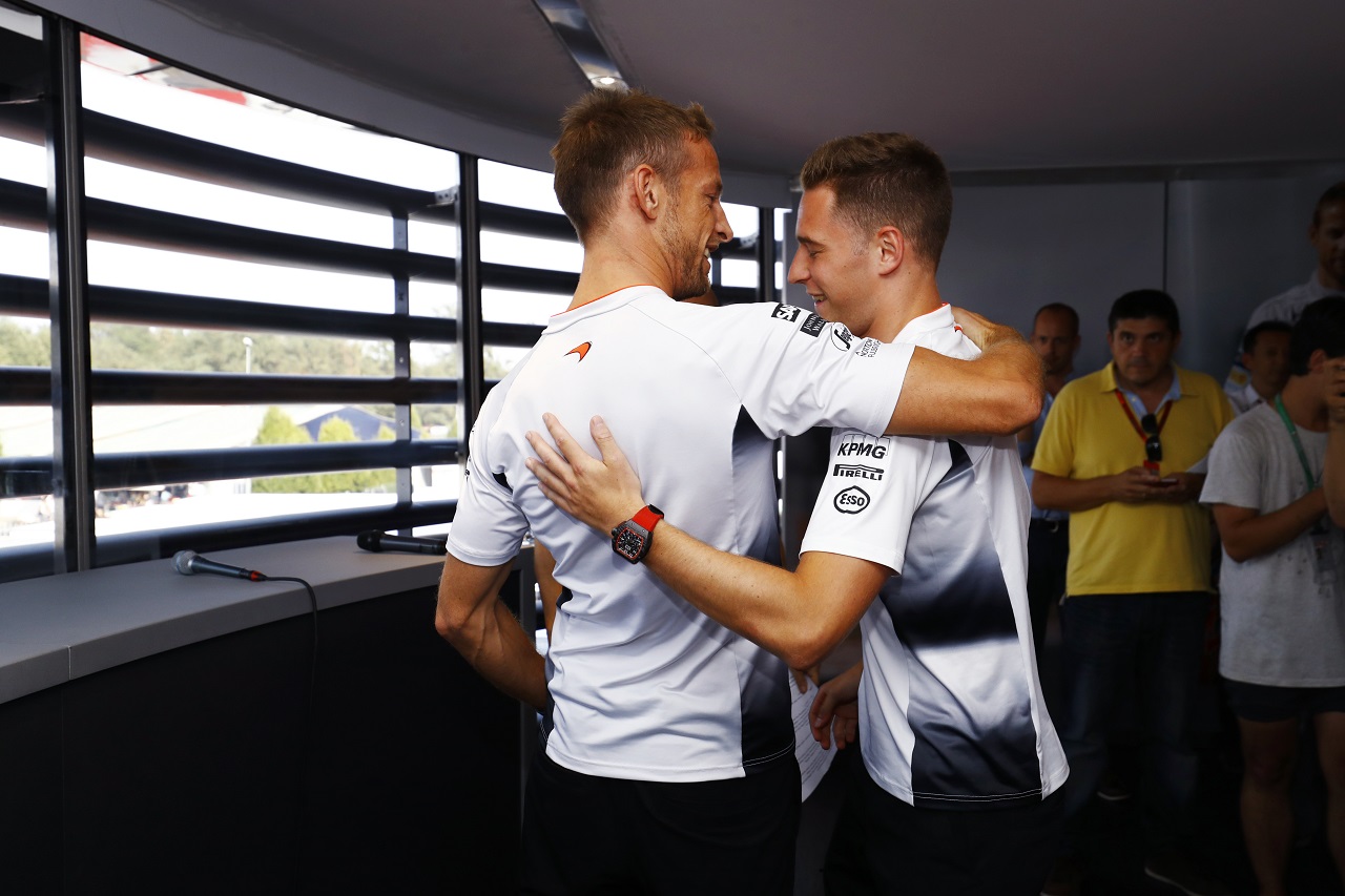 F1 フォト 【写真1】ジェンソン・バトンとストフェル・バンドーン 投稿日: 2016.09.04 06:23 2016年イタリアGP マクラーレン・ホンダの来季レースドライバーに決まったストフェル・バンドーンとリザーブとなるジェンソン・バトン このフォトが使われている記事へ © LAT
