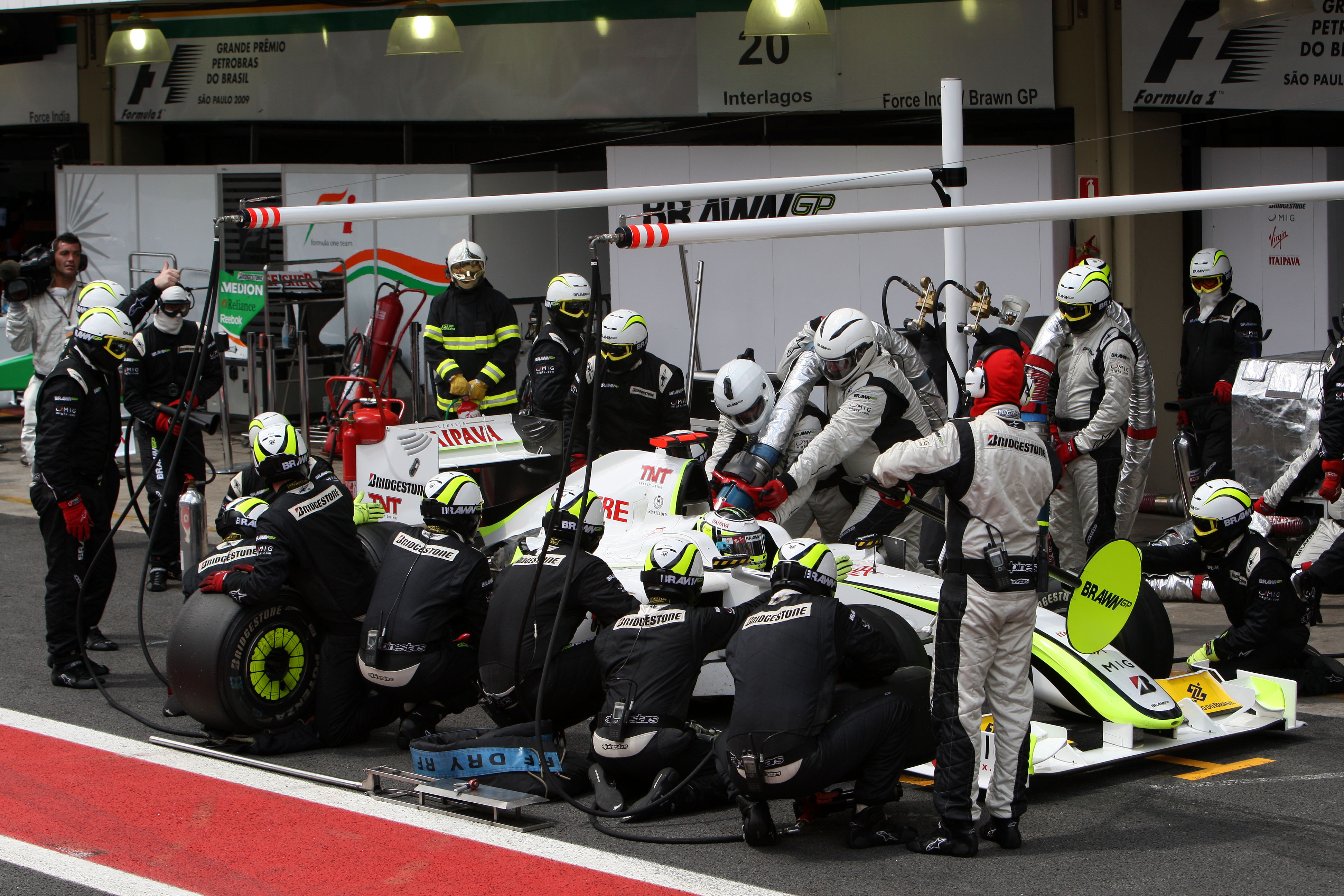 レース中の給油が禁止される前の、2009年ブラジルGPでのジェンソン・バトン