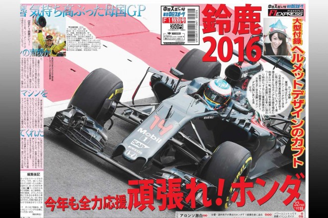 もちろん、メイン特集は常勝軍団復活を目指すホンダ。なんと今回は、オールカラーのタブロイド判32ページに、はさみを使わずフェルナンド・アロンソ、ジェンソン・バトンのヘルメットをデザインした大型カブトが作れる新聞紙見開きサイズ折り紙の付録付きだ。