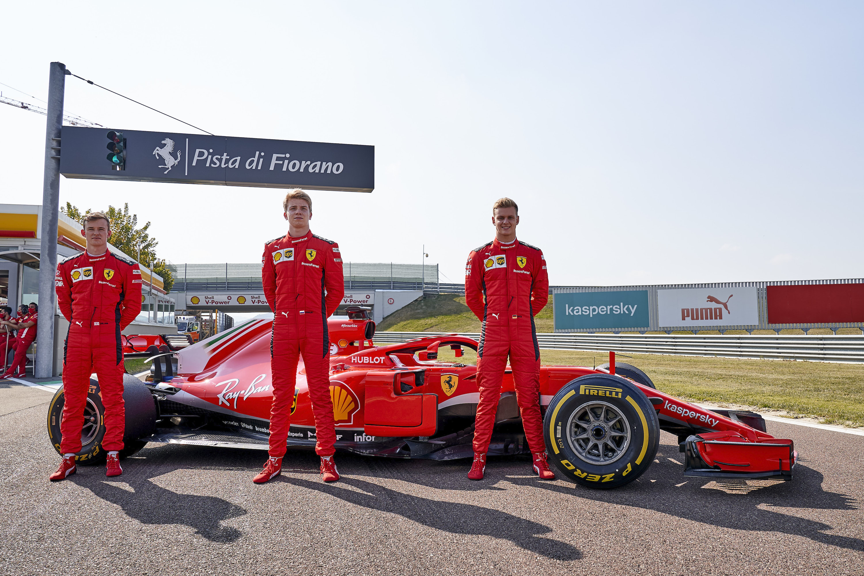 F1 フォト 【写真1】FP1出走が決まった3人のFDAドライバー 投稿日: 2020.10.02 18:11 アイロット(左)、シュワルツマン(中央)、シューマッハー(右) このフォトが使われている記事へ © Ferrari