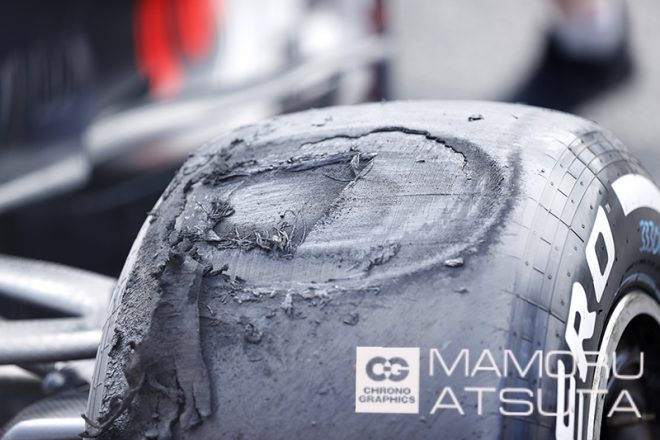 今回のタイヤバーストの原因が路面に落ちていた何かを踏んでしまったことによるものなのか、内圧設定もしくは製造過程によるものなのか……