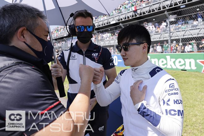 メキシコで調子良かったのですが、PUの交換を宣言されていて日曜のレースは後方からのスタートが確定していたので、角田選手のQ3の目的のひとつに、ガスリー選手のアタックを助けるために、長い直線で引っ張ってあげることが仕事となり、見事作戦成功し、ガスリー選手は5番手を獲得できました。
