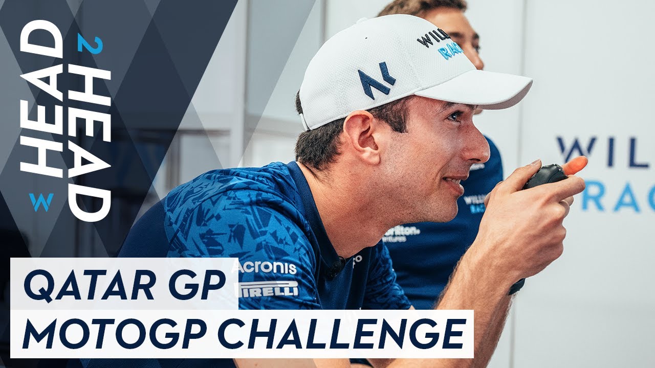 【写真1】MotoGPゲームに挑戦したウイリアムズのふたり。ランオフエリアの芝生まで使った大胆な走りを披露