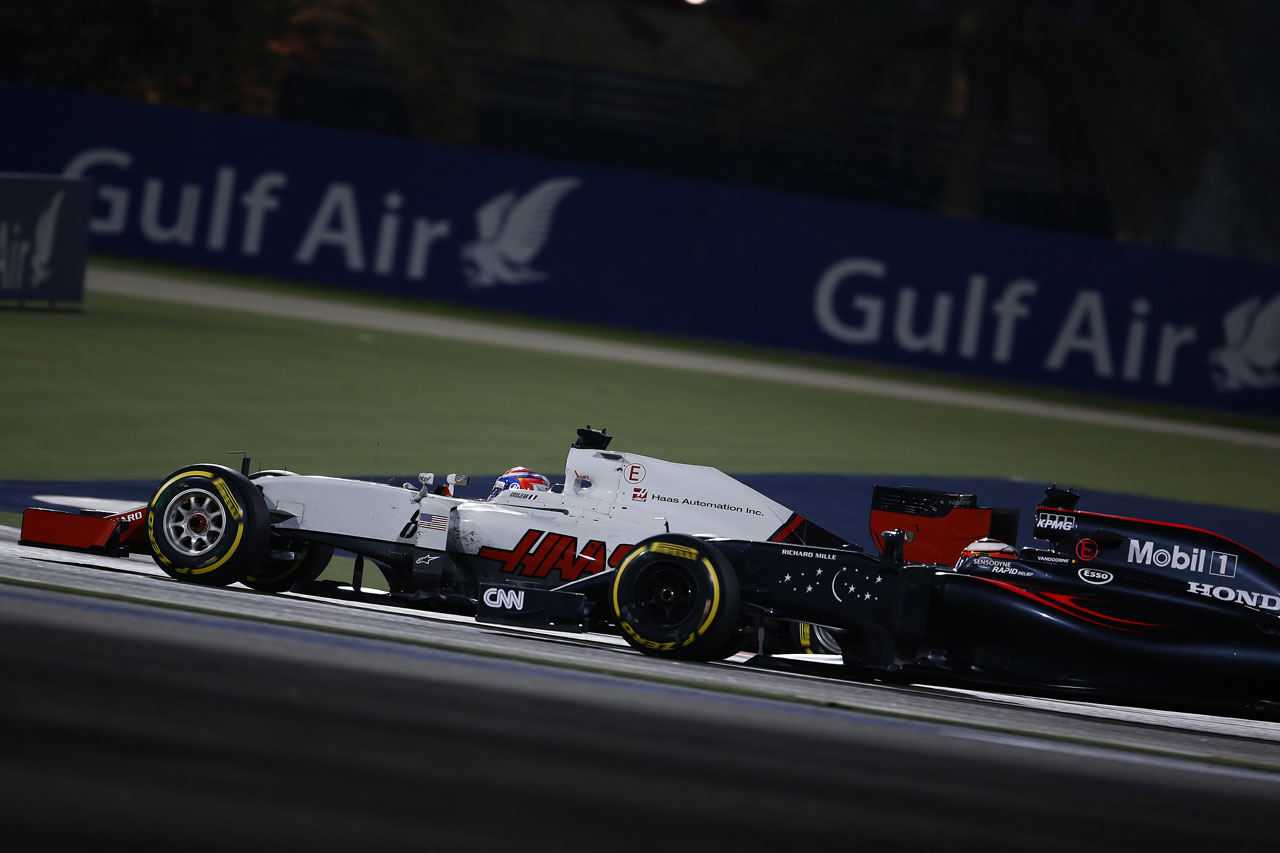 F1 フォト 【写真1】2016年F1第2戦バーレーンGP ロマン・グロージャン(ハース)とストフェル・バンドーン(マクラーレン・ホンダ) 投稿日: 2016.04.13 17:32 2016年F1第2戦バーレーンGP ロマン・グロージャン(ハース)とストフェル・バンドーン(マクラーレン・ホンダ) このフォトが使われている記事へ © LAT